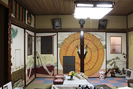 「楽屋」172~217㎝×525㎝ 襖にアクリル絵の具