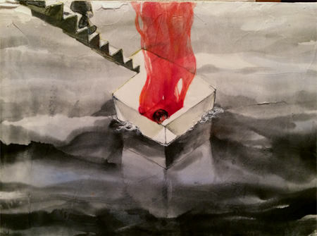 F4 キャンバスに墨、透明水彩