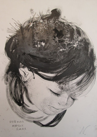 「休憩」F4 キャンバスに墨、透明水彩