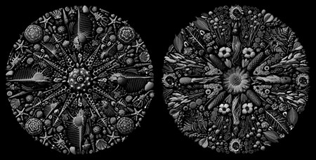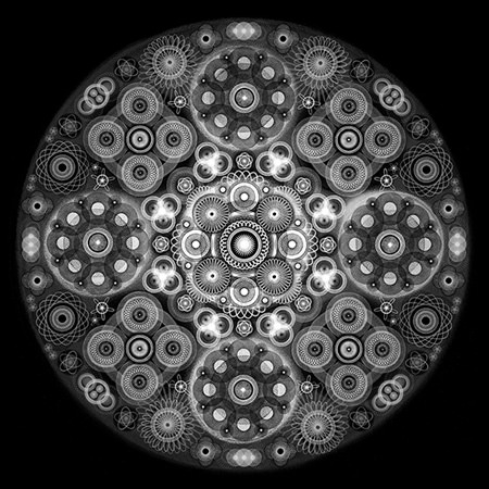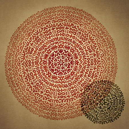 その円と様々な題材、表現方法を組み合わせて文様を作りました。