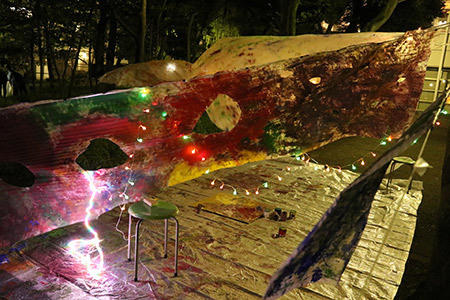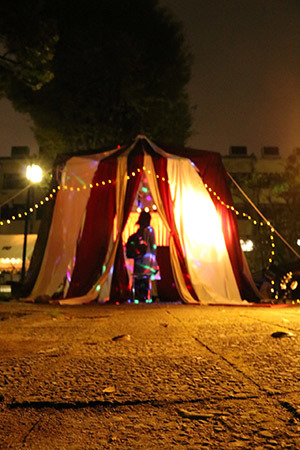 本展は、「アートを通して驚きと感動に溢れた贅沢な非日常を与えたい。」という想いから始まった、東京家政大学造形表現学科の企画「アートキャンプ2021 」の報告展示となっています。今年はサーカスをコンセプトに、繋がりや多様性を重視した、個性溢れる様々なプロジェクトを行いました。一人ひとりが一座の団員となり、アートのサーカスとして新しく作り上げた『アートキャンプ 』を、ご覧いただければ幸いです。
