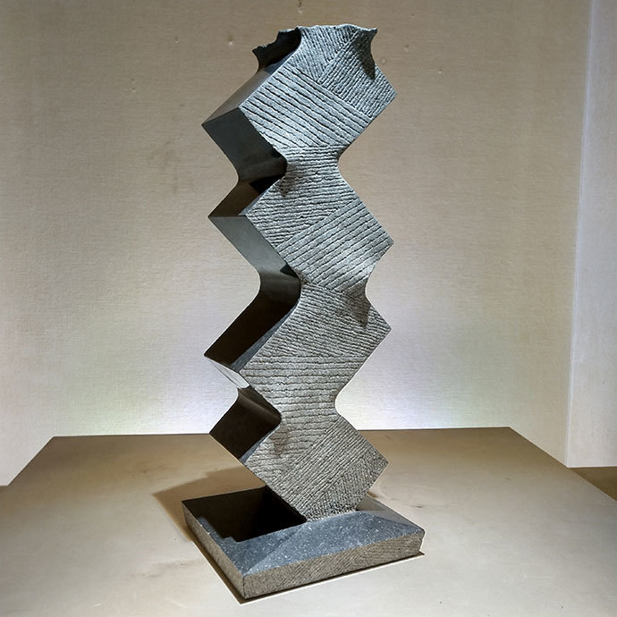 素材の石と向き合った痕跡を刻み込みつつ、少しだけ石が柔らかくなったように感じられる様な作品を制作しました。