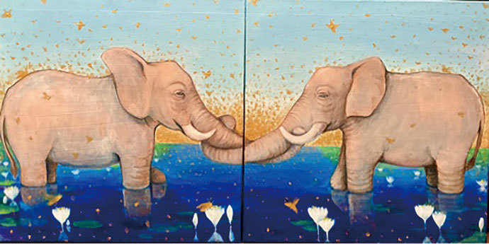 私にとって絵を描いて表現することは、呼吸するように自然なことなので、湧き出るものをひたすら筆やペンに乗せて没頭し集中します。吐いて、吸って、また吐いて…私のアートは宇宙のリズムとともにあります。