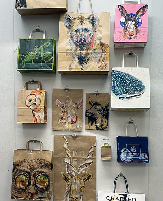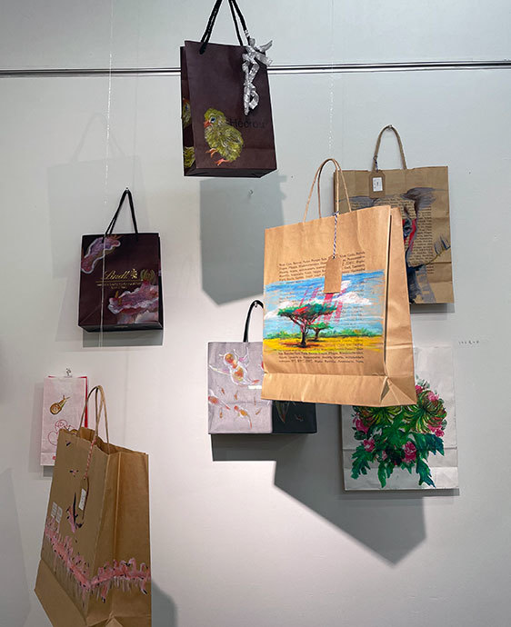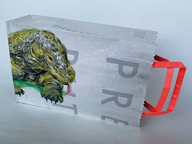 2022年 ギャラリーkingyo「1000枚 drawing展」より紙袋にクレパスで絵を描き始める
