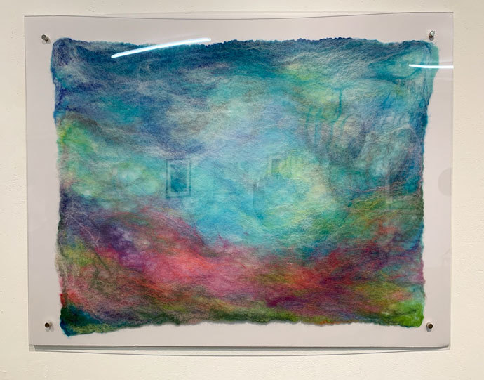 薄く積み重ねた羊毛の色の重なりが不思議と絵になっていくからです。