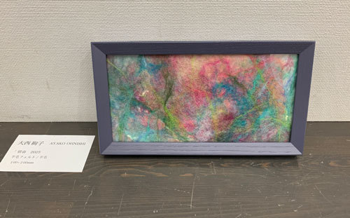 羊毛を薄く積み重ね、色の重なりが絵となっていきます。