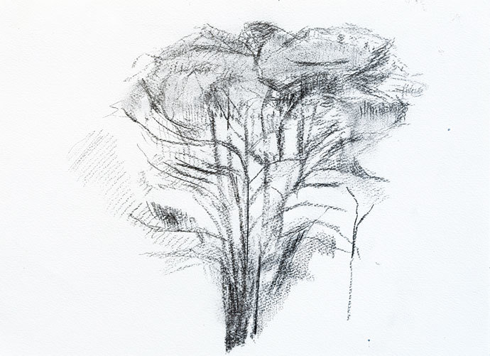 記憶にある少しの風景や身近なモノの形を一つの画面の中に描き続けいつ終わるともない。